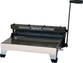 A DUPLAMATIC é uma perfuradora manual para encadernações com garra de duplo anel que permite a perfuração com furos redondos ou quadrados (mediante ferramenta suplementar), além de possuir ajuste de margem. A DUPLAMATIC possui diversas ferramenteas sobressalentes que podem ser adquiridas de acordo com a sua necessidade e escolha. As perfurações até 110 folhas utilizam o passo 3 x 1, sendo que as perfurações de 110 a 200 folhas utilizam o passo 2 x 1, independente do modelo do furo (quadrado ou