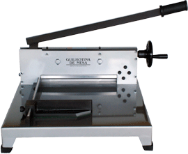 | Detalhes técnicos: • Largura: 545 mm • Comprimento: 500 mm • Extensão de corte: 338 mm • Peso: 27 Kg • Capacidade de corte: 250 folhas |
